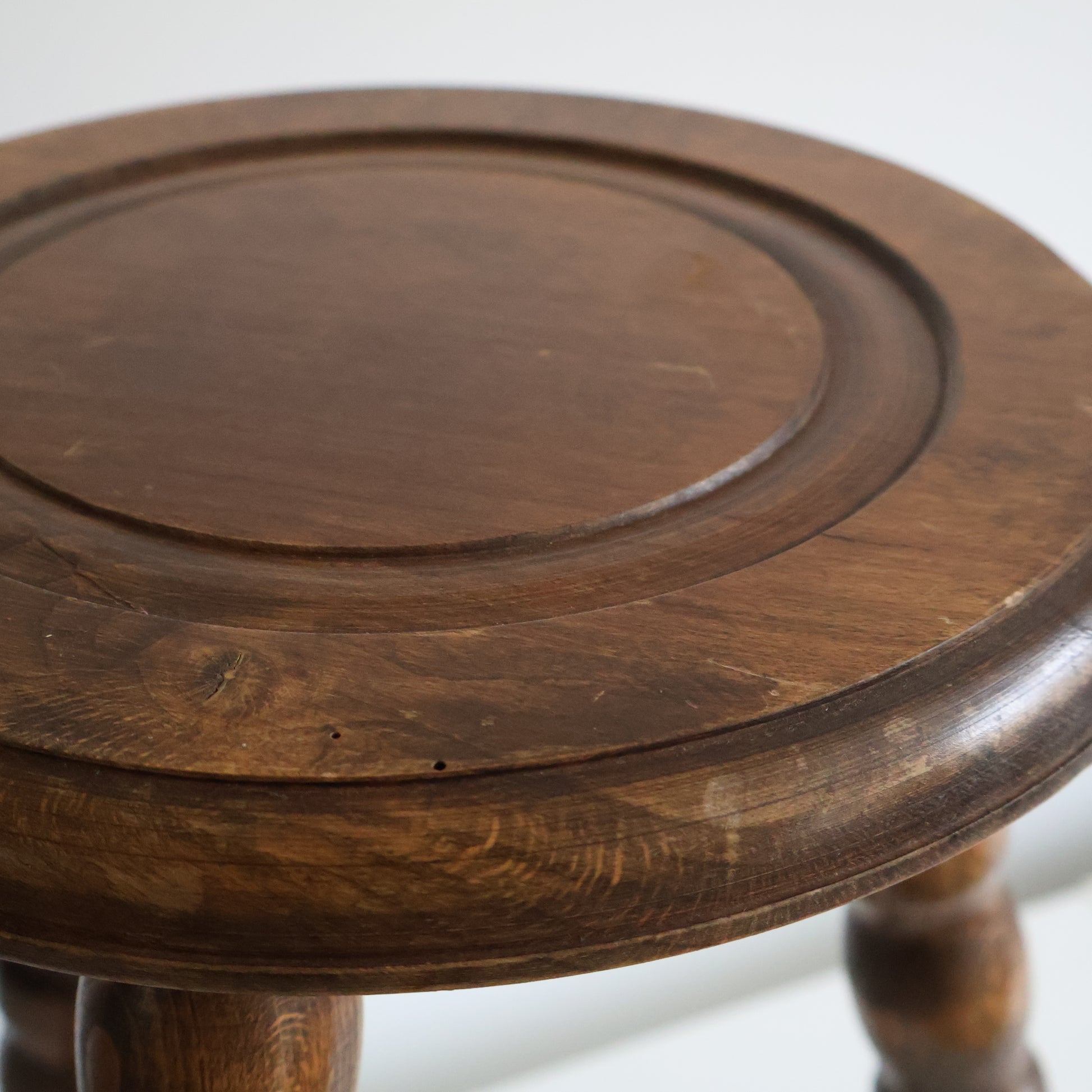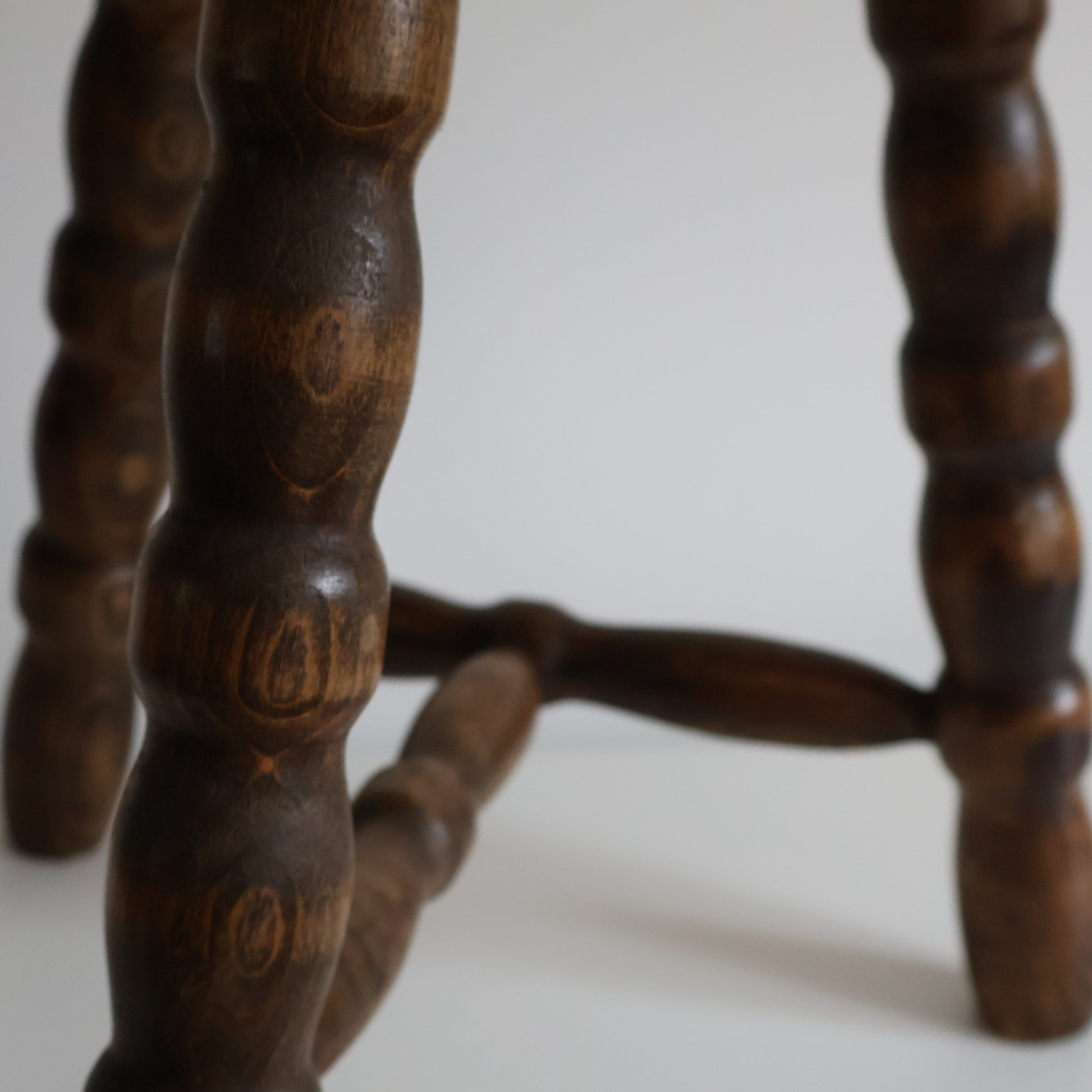 A gorgeous vintage bobbin stool , perfectly rustic yet in wonderful condition, crafted from dark brown wood.