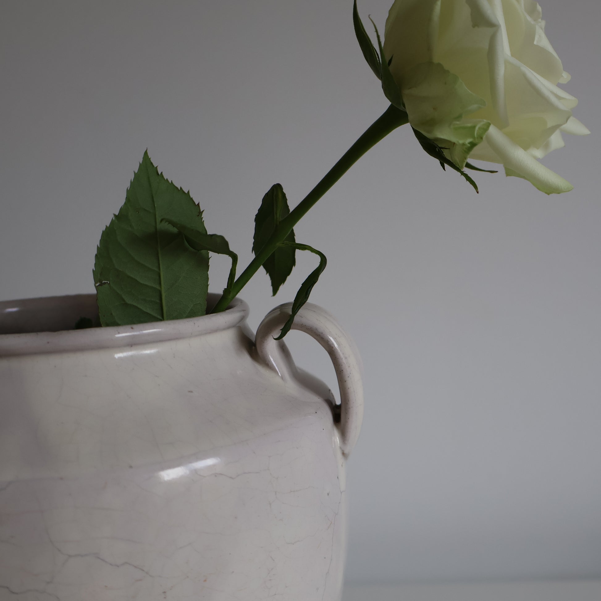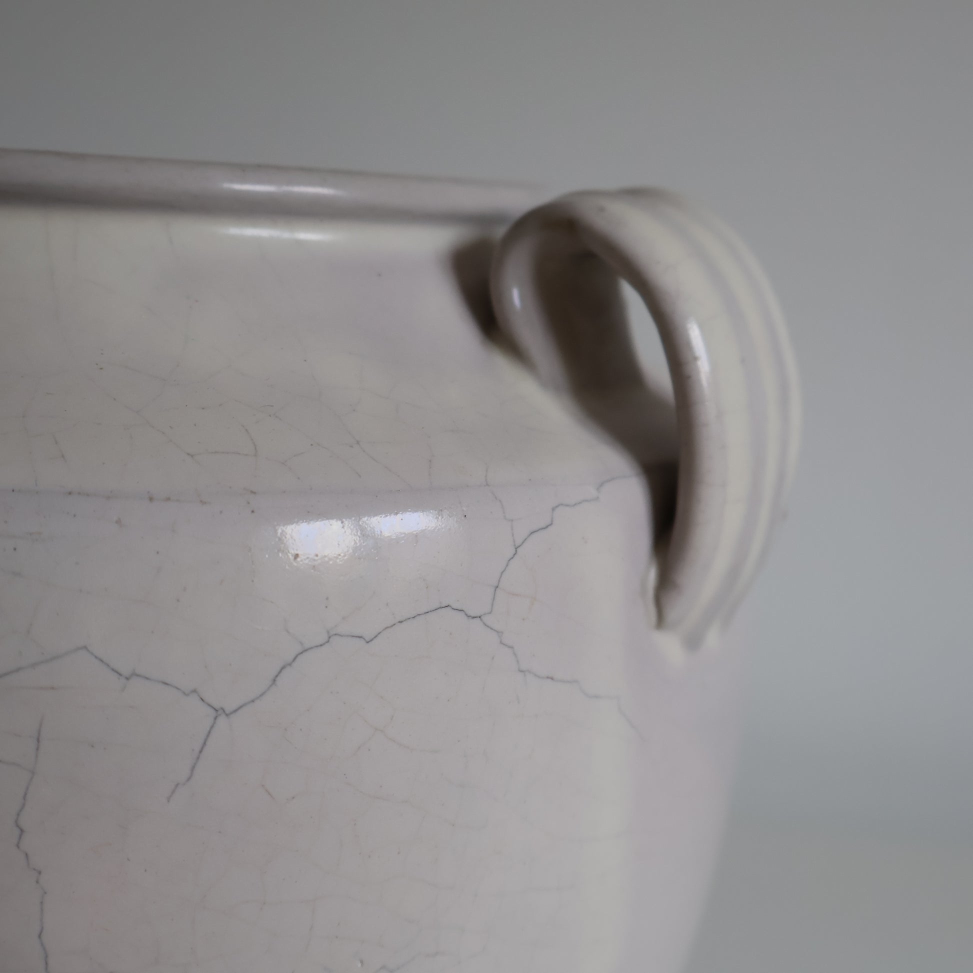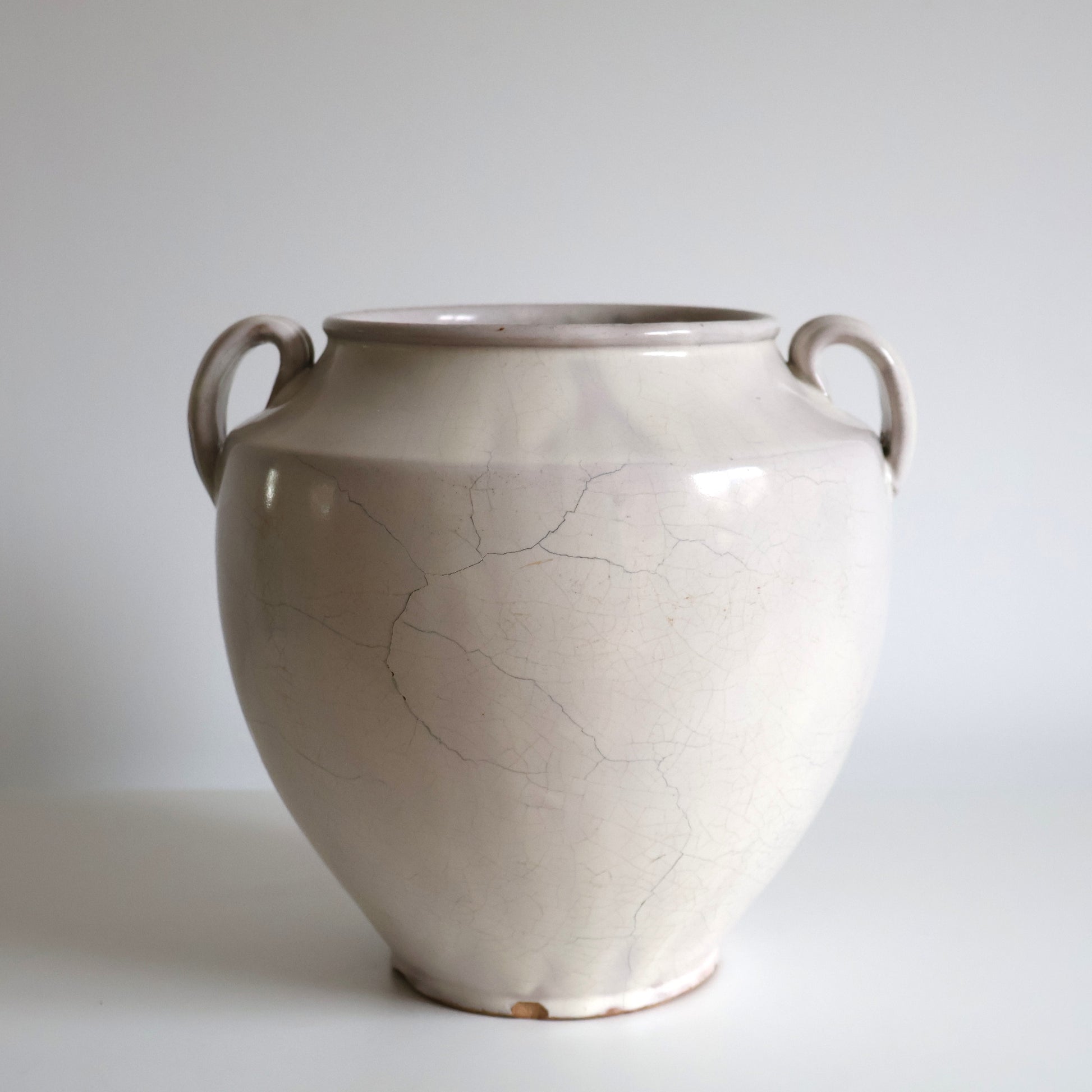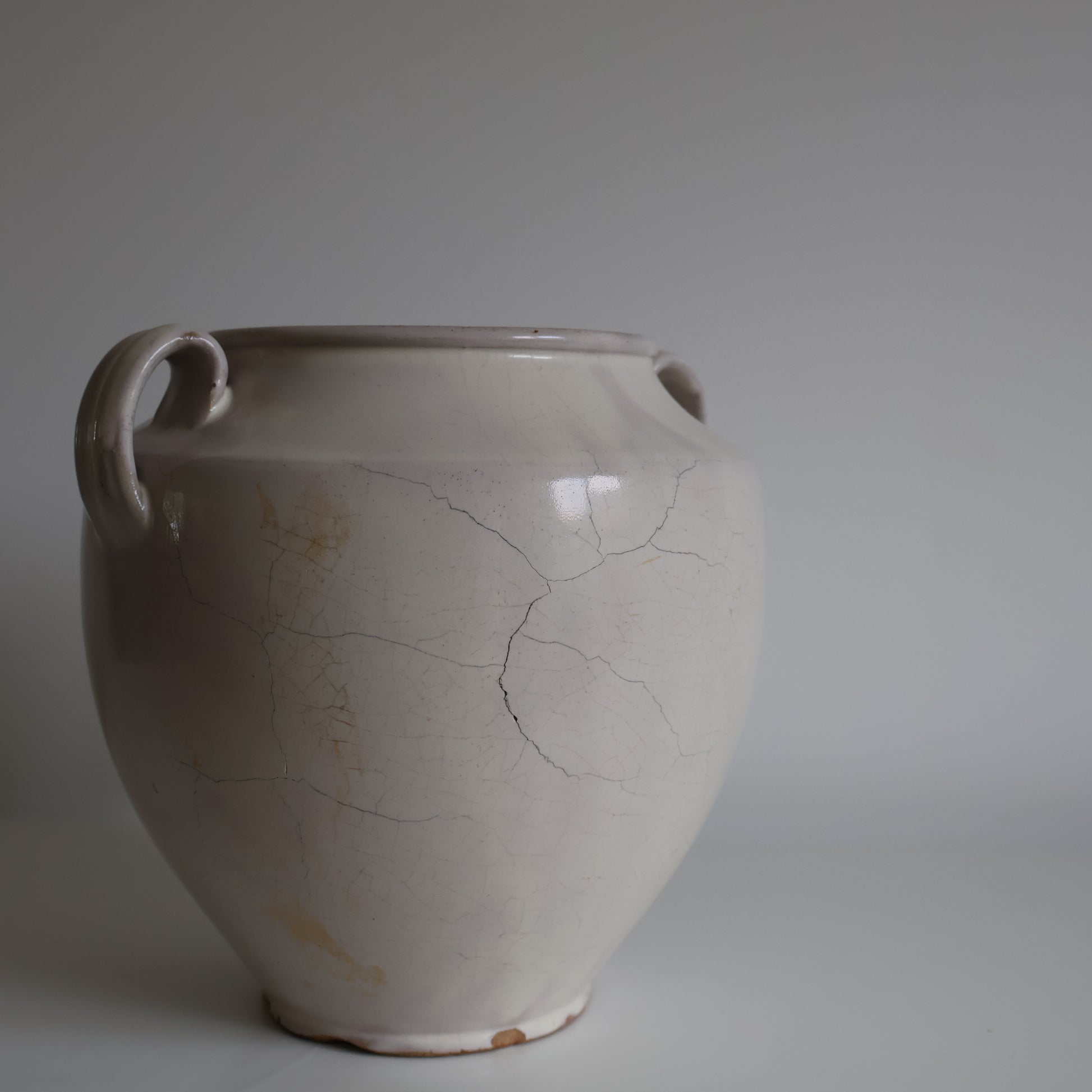 A rare 19th century white confit pot and this one is particularly special being petite in size. It has a wonderful craze to the glaze and a very faint lilac hue running through.