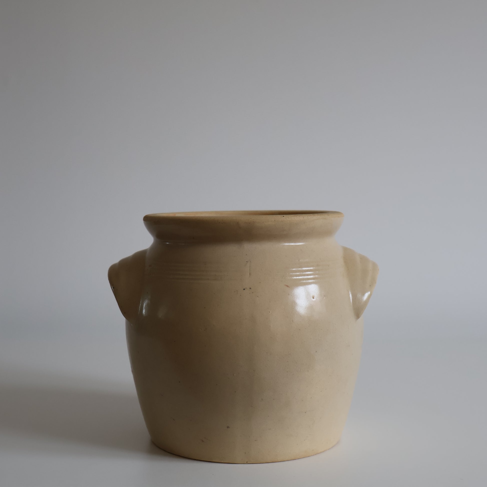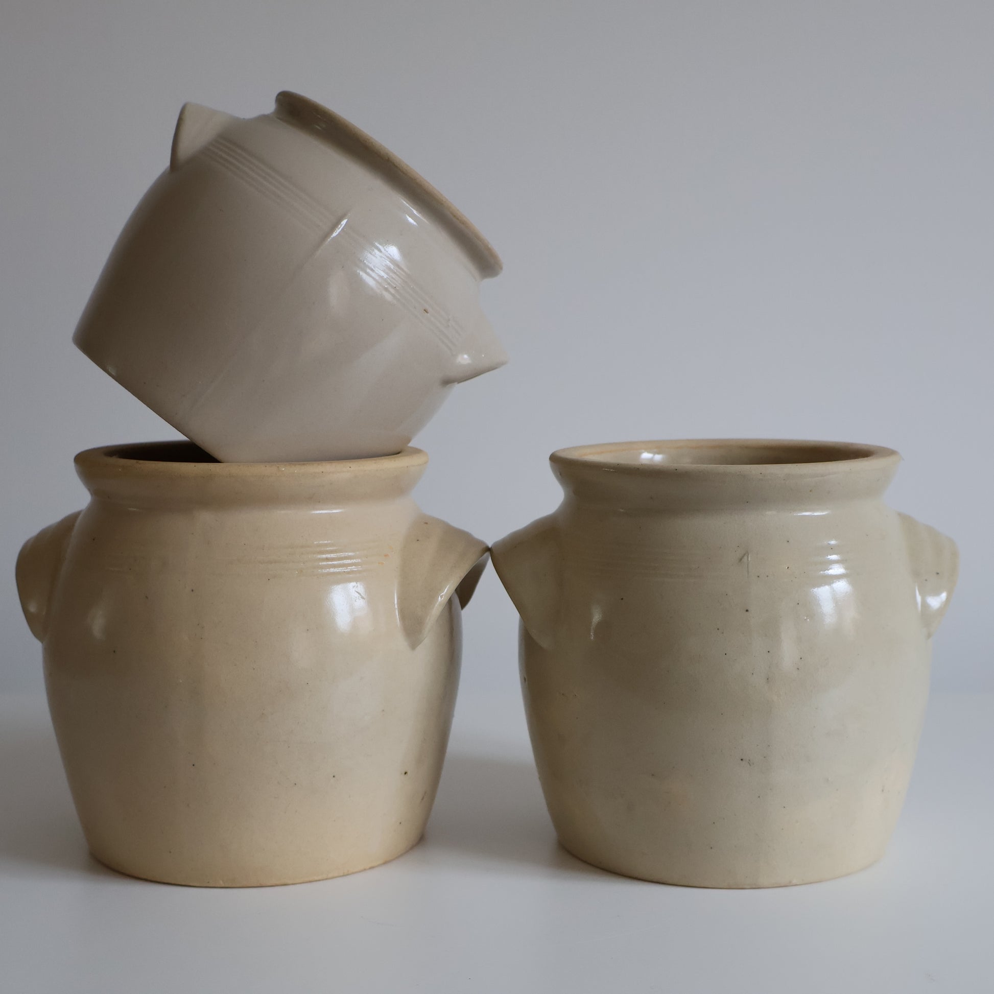 A mini confit pot in soft cream tones, featuring subtle crazing detail.