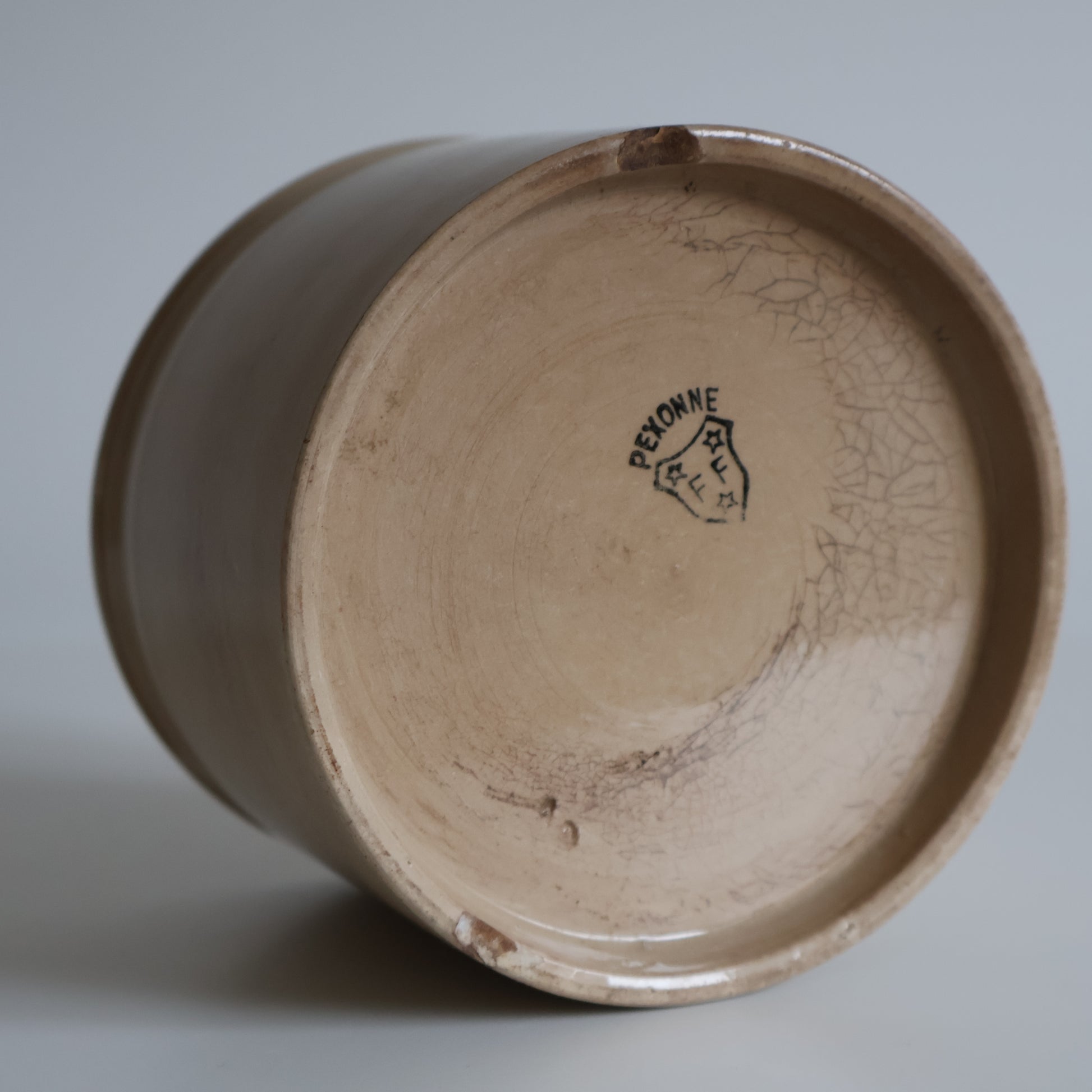 A gorgeous pale beige confiture pot with a subtle brown mottled effect throughout.