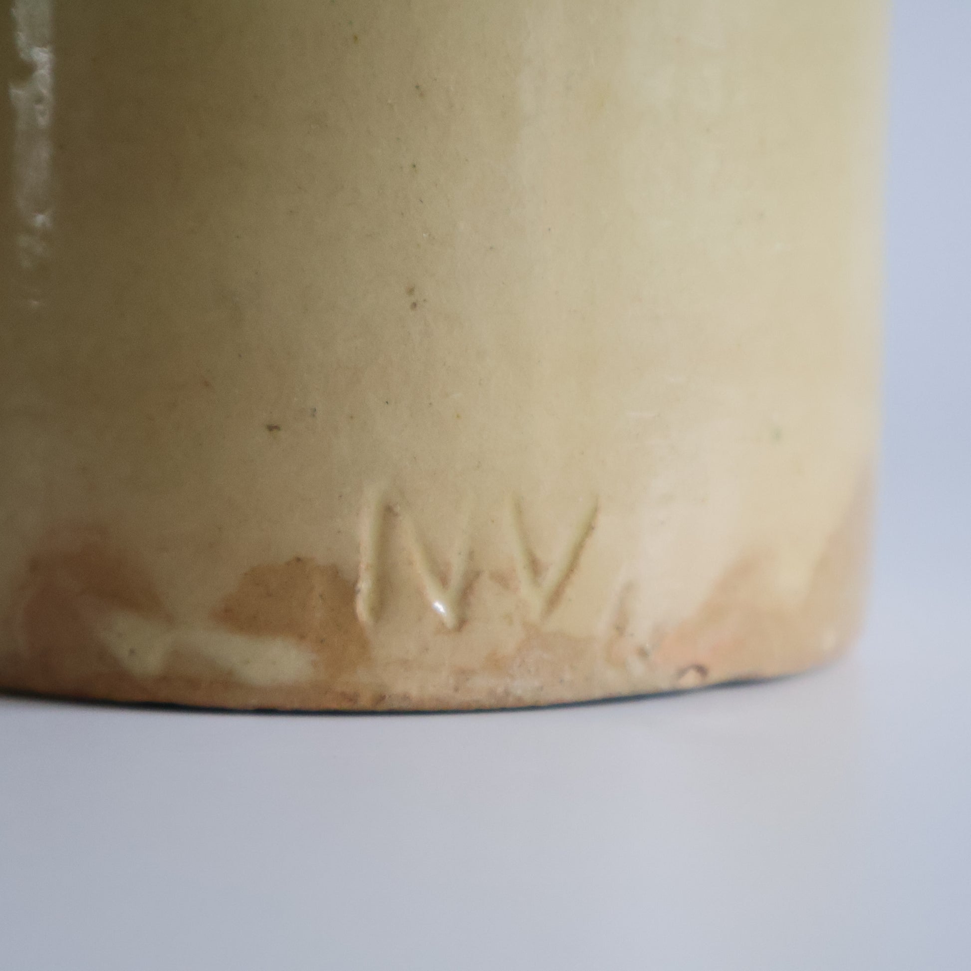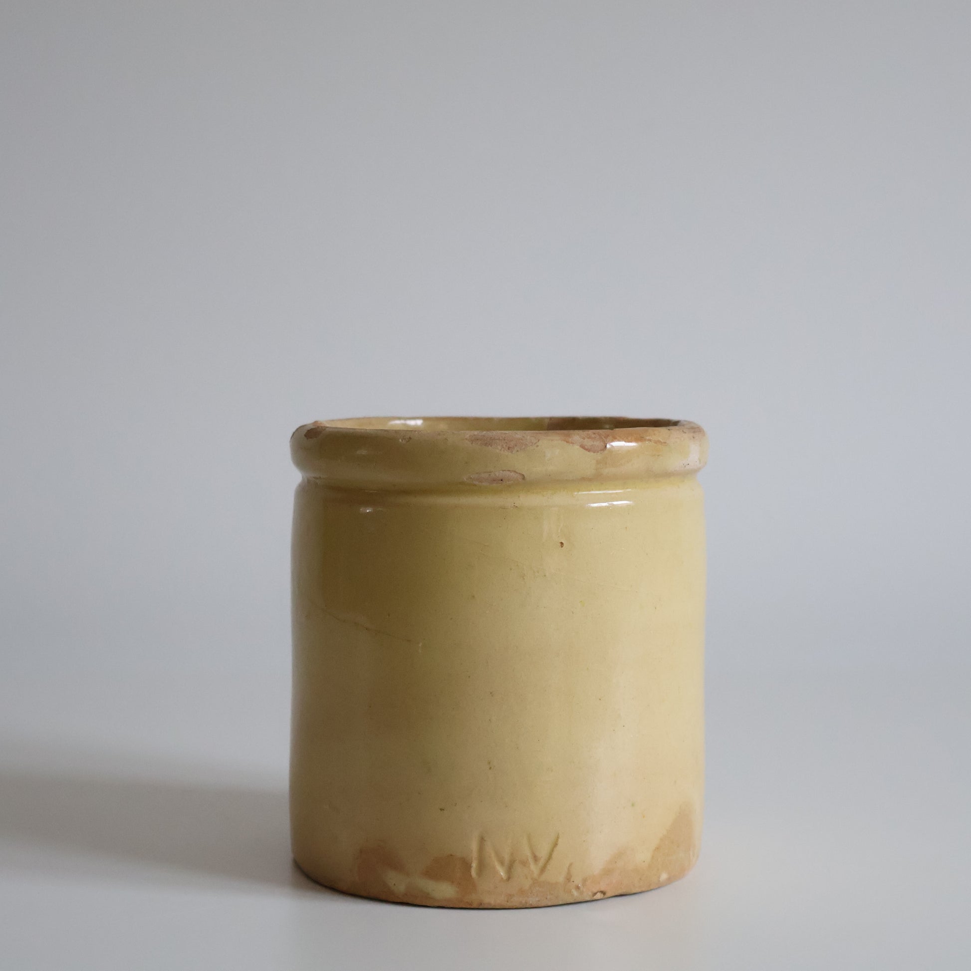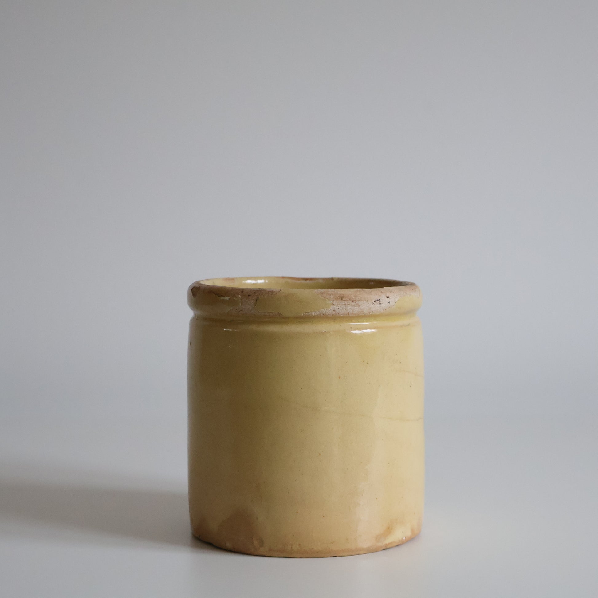 A small confiture pot in pale yellow glaze, beautifully aged.