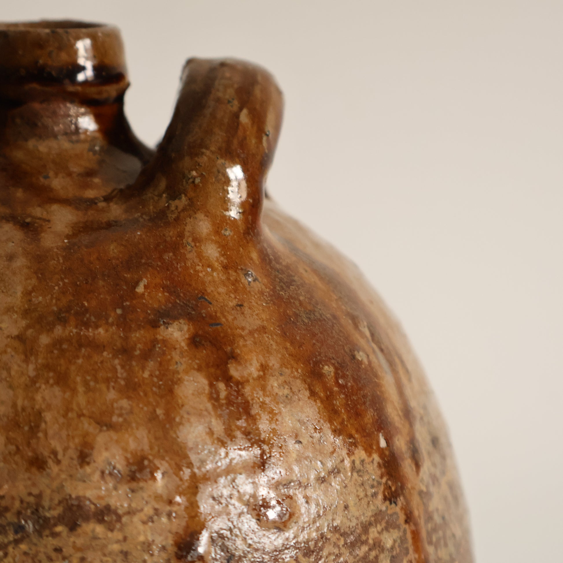A beautifully aged, medium sized French jug in warm brown and brick tones, with a deep chocolate drip glaze. Subtle beige accents provide gentle contrast, it is full of charm with it's layered colouring.