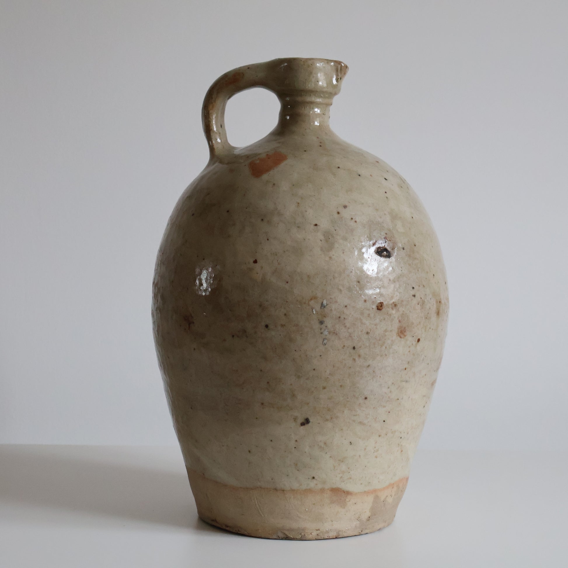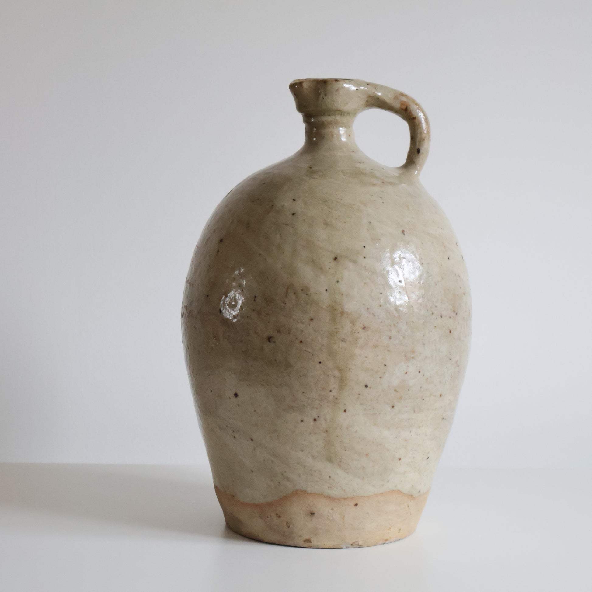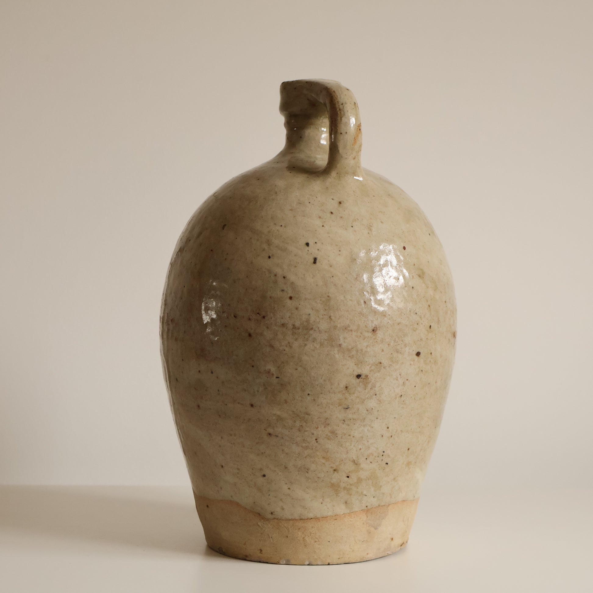 A beautiful medium sized French jug with a glossy neutral glaze. It features a subtle speckle effect, with the maker’s initials stamped on the body. In incredible condition for it's age, it’s a true treasure.