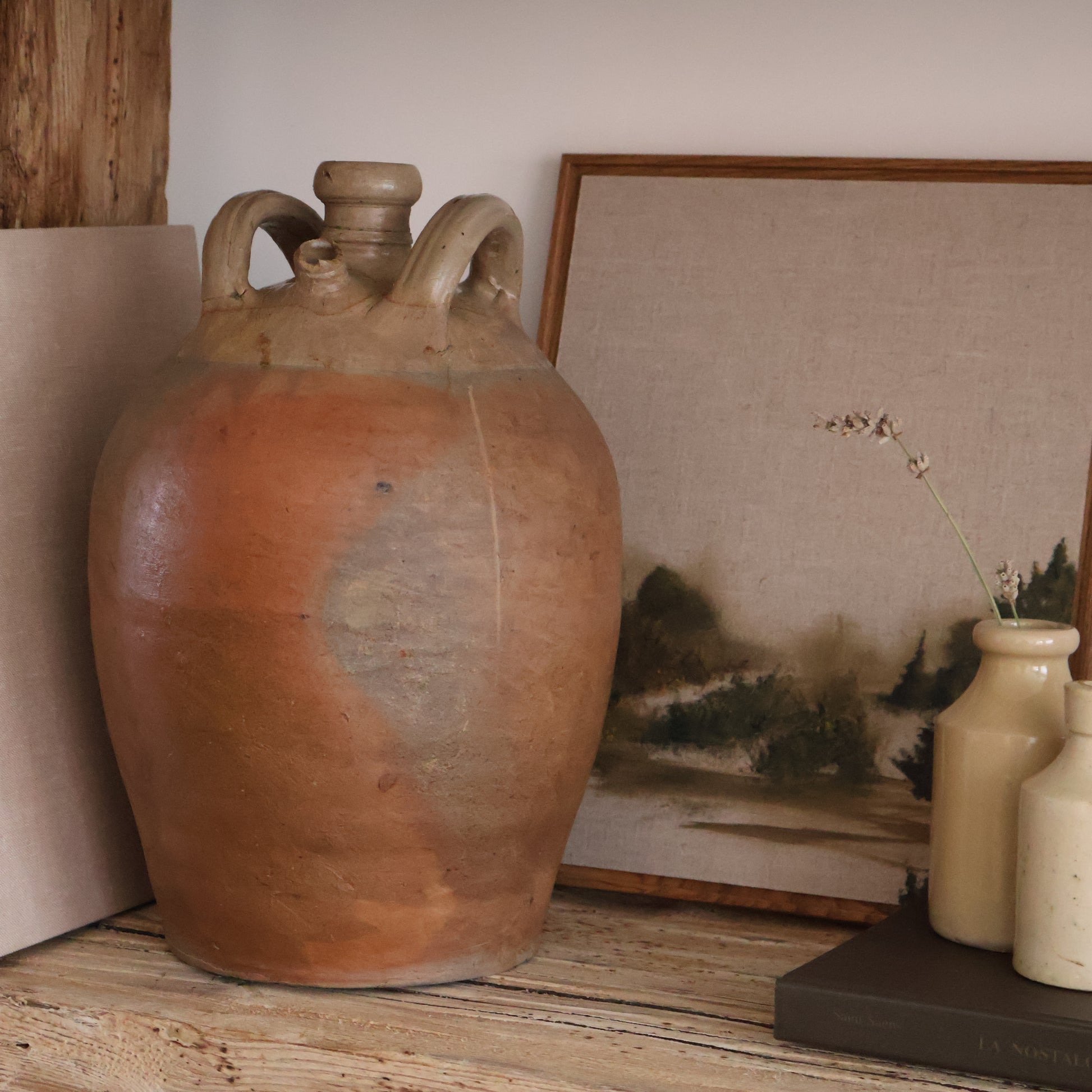 This lovely medium French jug has the prettiest mix of earthy colours and deep blush tones, topped off with a taupe glazed handle.