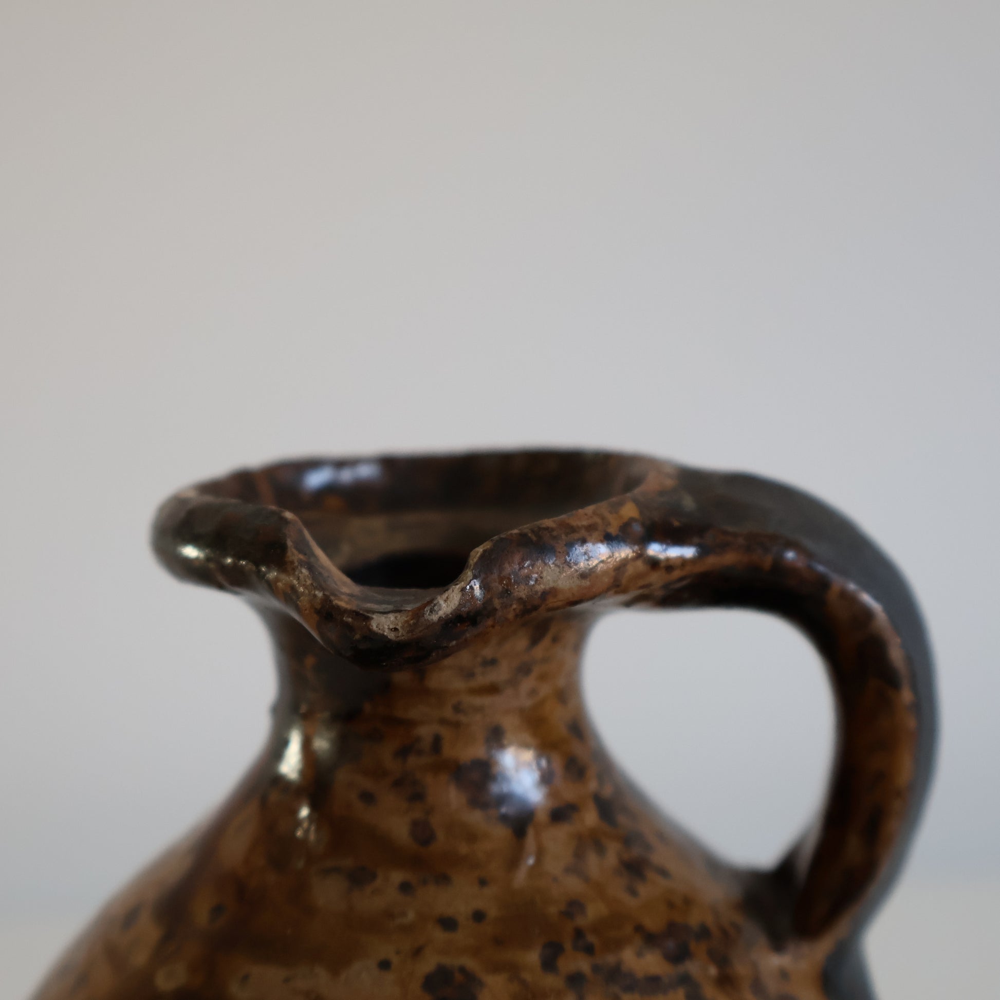 A chocolate glazed dream! This small French jug is in wonderful condition, featuring a beautiful partial glaze in rich chocolate tones and a contrasting unglazed base.