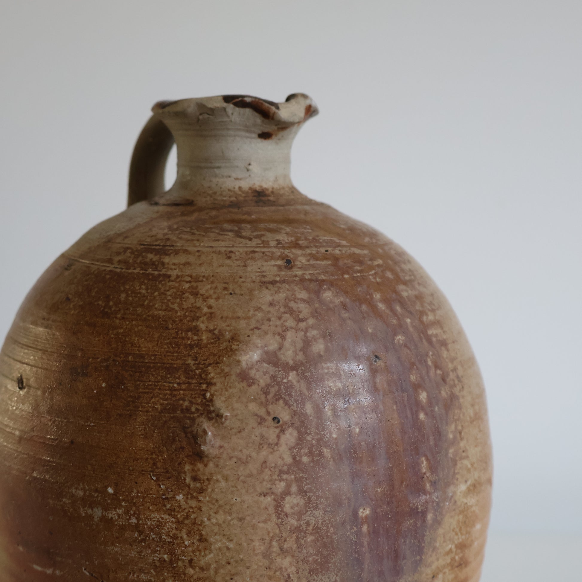 This medium French jug is full of charm, featuring a beautiful glaze in a rich mix of browns, beiges, and blush tones, with a deep chocolate glaze inside the neck.