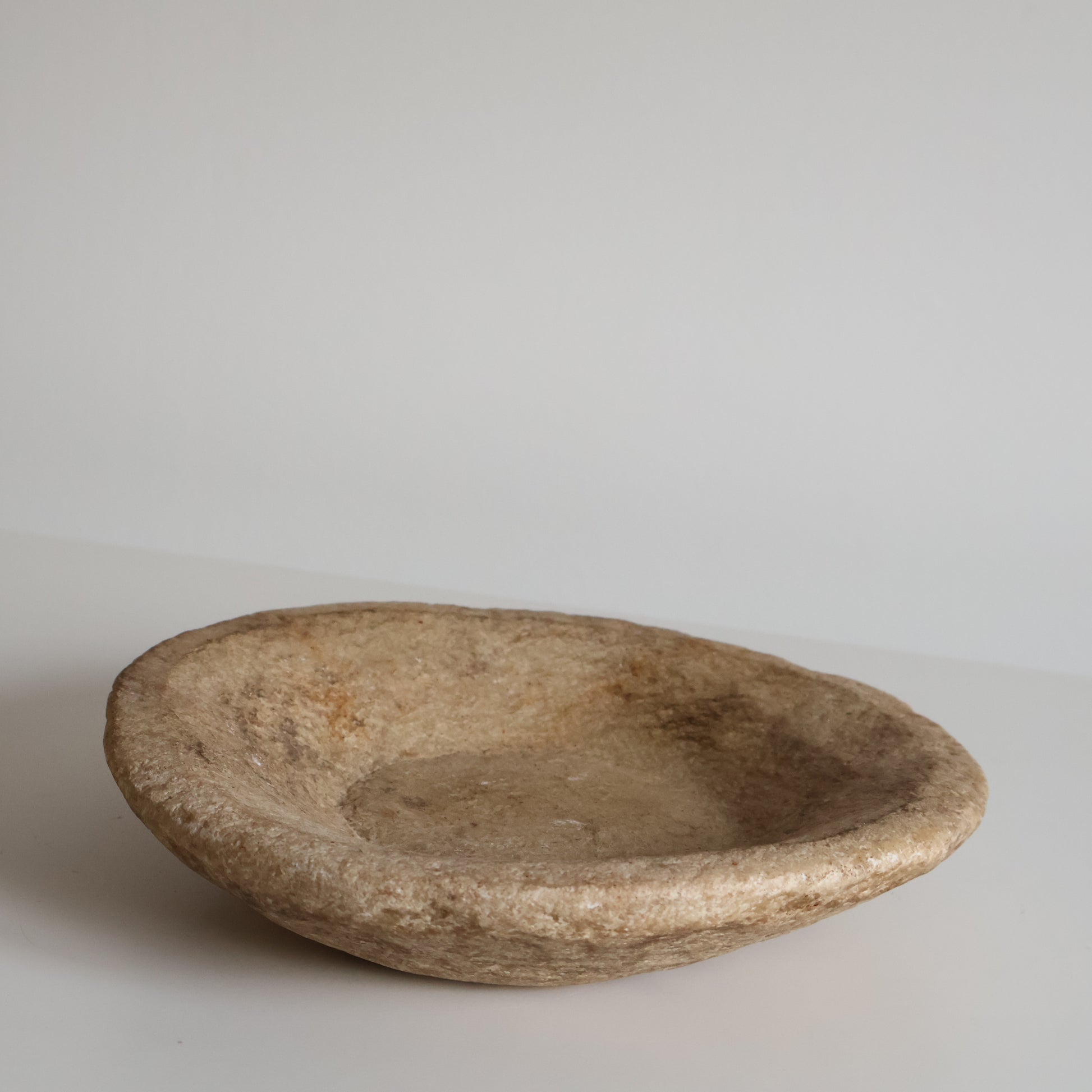 A small antique Indian marble bowl in beige stone with the most beautiful textured patina.