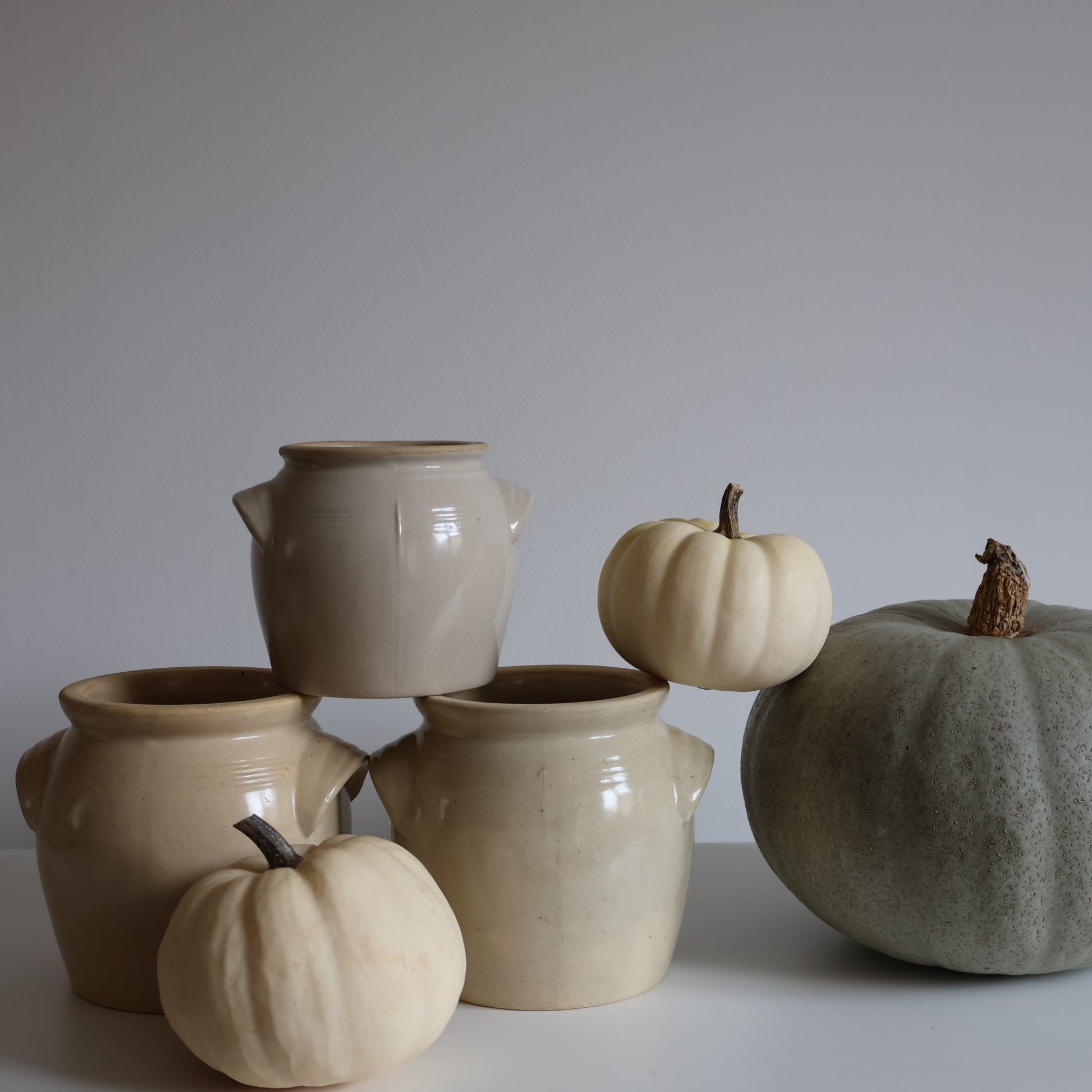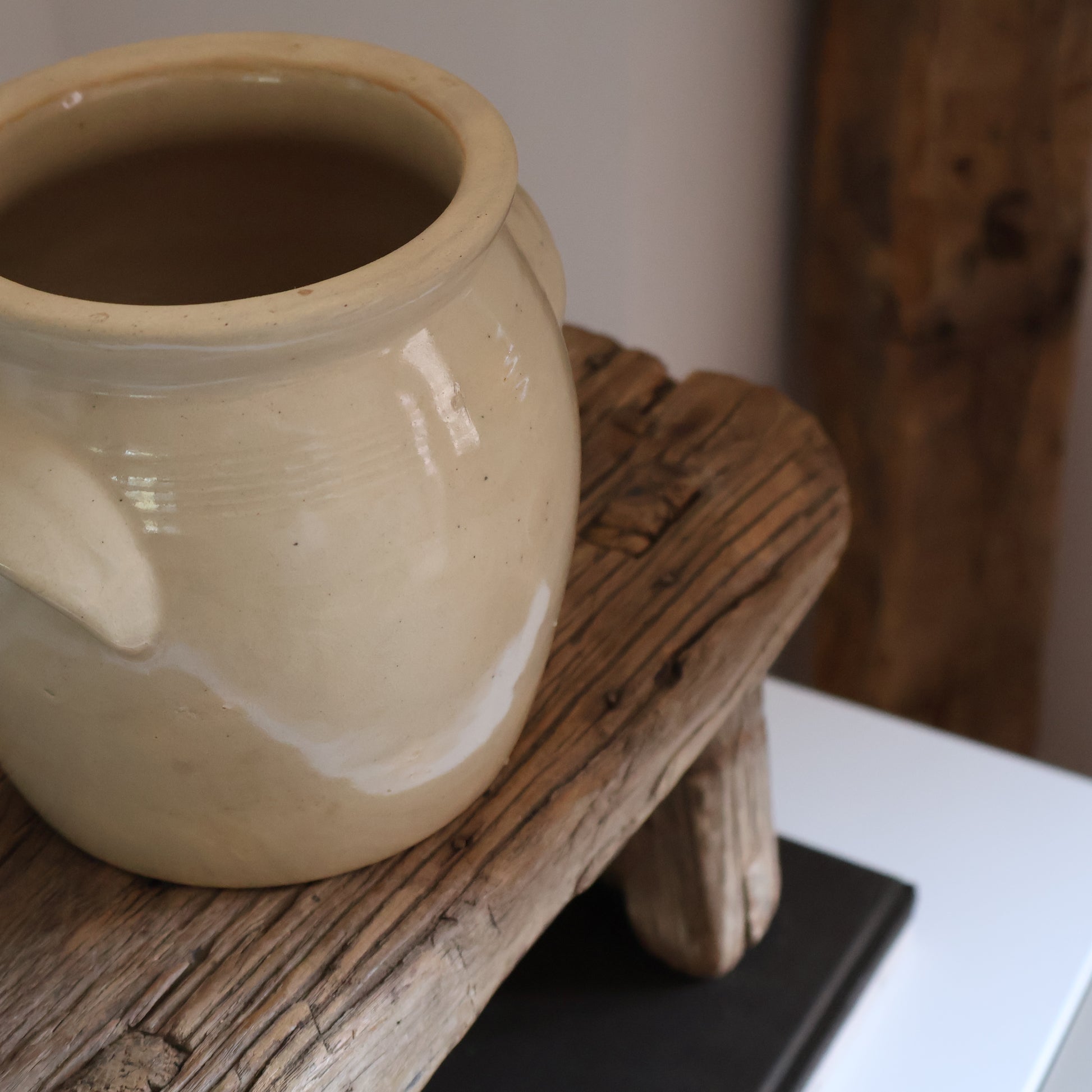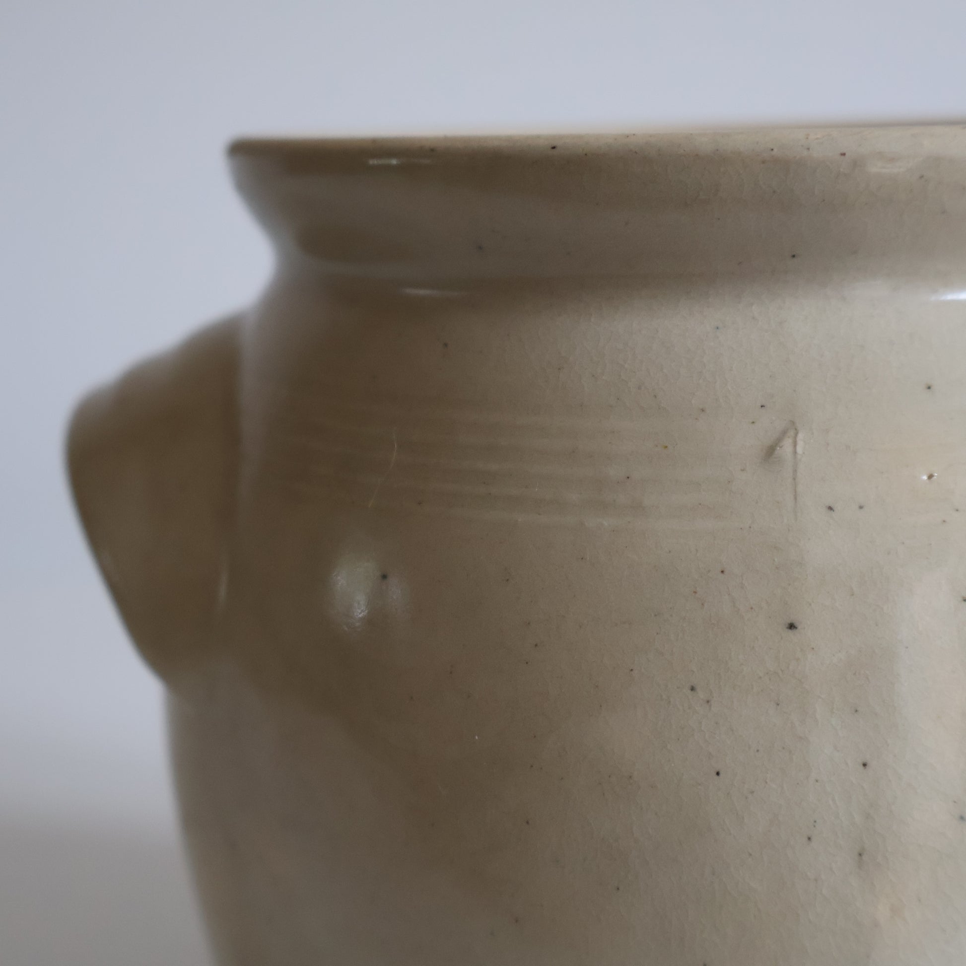 A mini confit pot in off white tones, featuring subtle crazing detail.